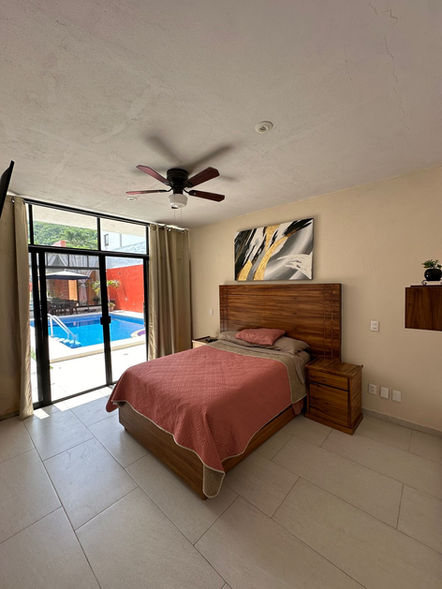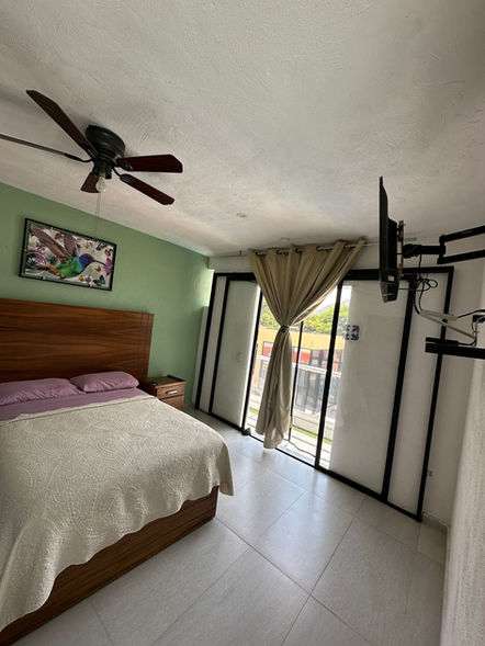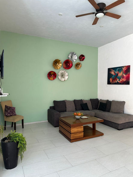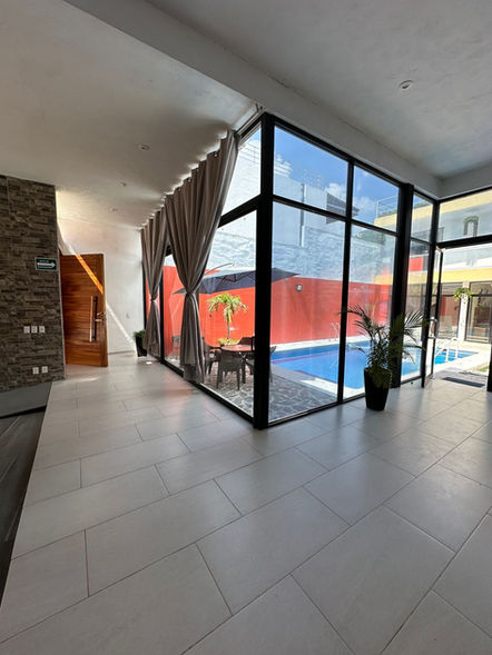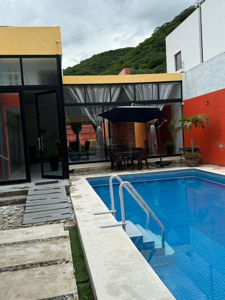 Colibri Orange is bright and modern, located in West Ajijic. When you walk in, you feel like you are in a boutique hotel, as the residence is built around a courtyard with its own swimming pool (13.12 feet X 24.6 feet, deep 3.93 feet). There is a large, modern, open plan common area with lounge, and a kitchen-dining room, and a fun rooftop sky-lounge with views out to Lake Chapala.